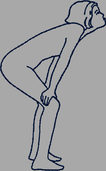 Начальная поза: это обычная поза стоя, ноги на ширине 30-35 сантиметров, руки опираются ладонями на ноги на два с половиной сантиметра выше коленей. Будто вы собираетесь сесть. Выполните дыхательное упражнение, задержите дыхание, втяните живот и примите основную позу.