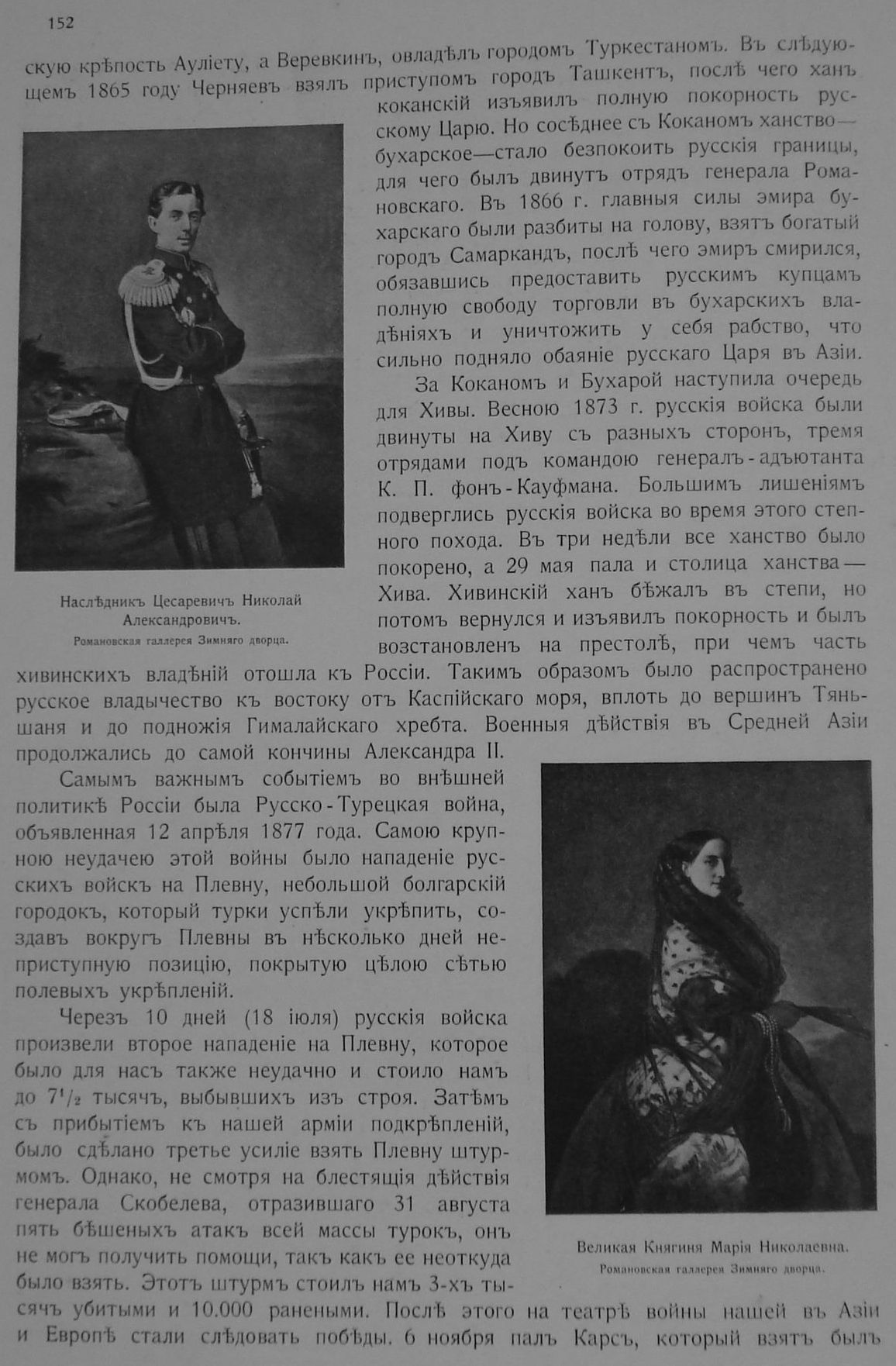 Сверх того, были получены Ардаган, Карс, Батум с их округами и денежную контрибуцию в размере 302,5 миллионов рублей. Так окончилась эта война за освобождение славян Балканского полуострова. И в достопамятный день освобождения крестьян в России и славянские народы Балканского полуострова освобождены были, при помощи России и её великого Монарха, от тяготевшего над ними в течение нескольких веков турецкого гнёта.